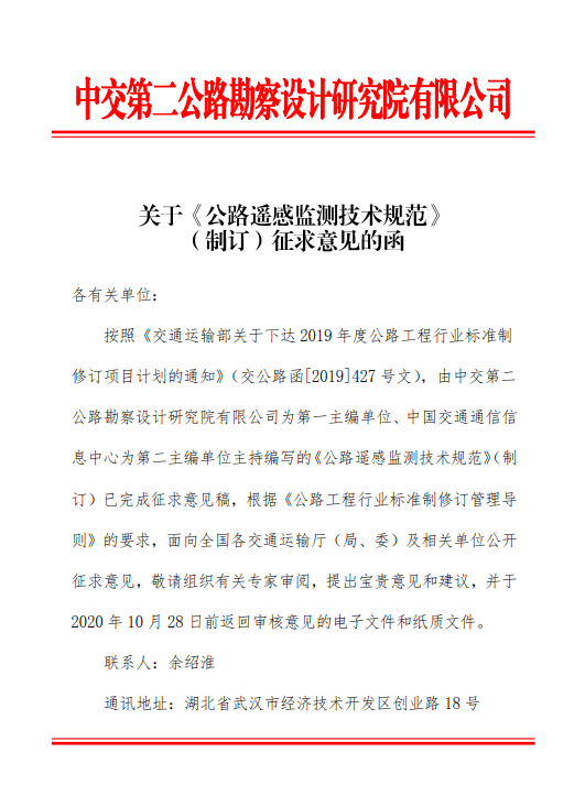 意见征求|《公路遥感监测技术规范》公开征求意见