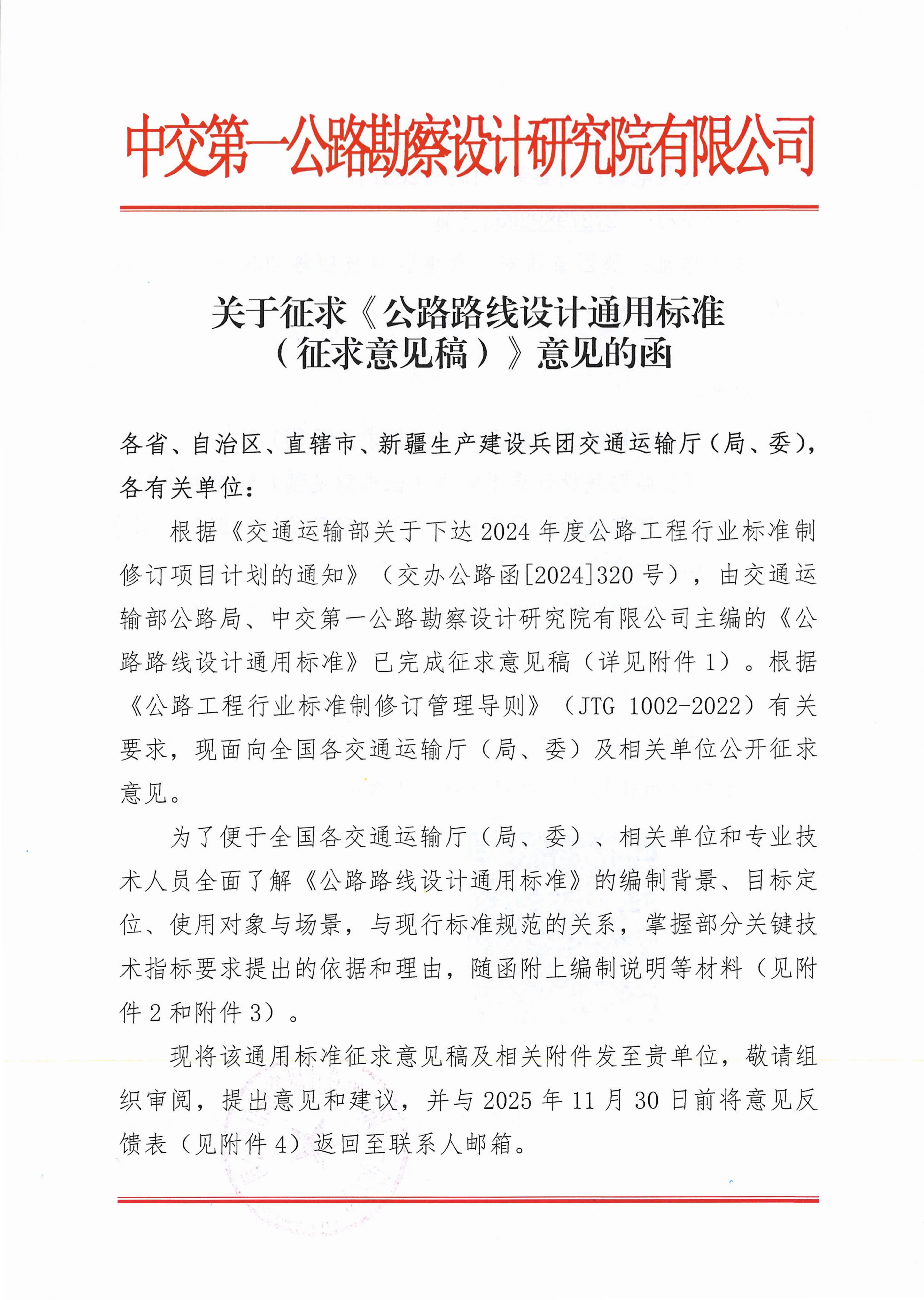 意见征求|《公路路线设计通用标准》(征求意见稿)公开征求意见