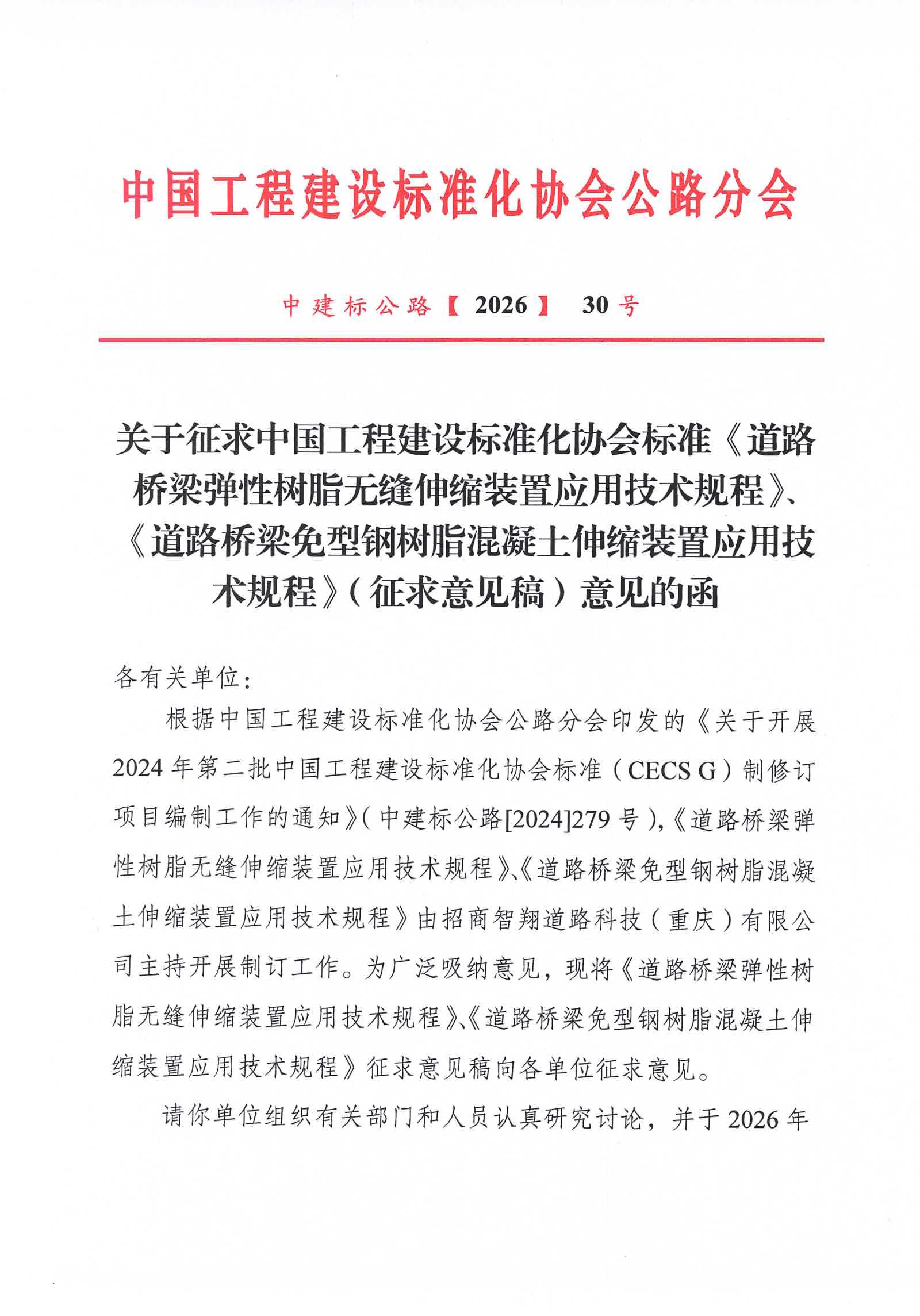 《道路桥梁弹性树脂无缝伸缩装置应用技术规程》(征求意见稿)