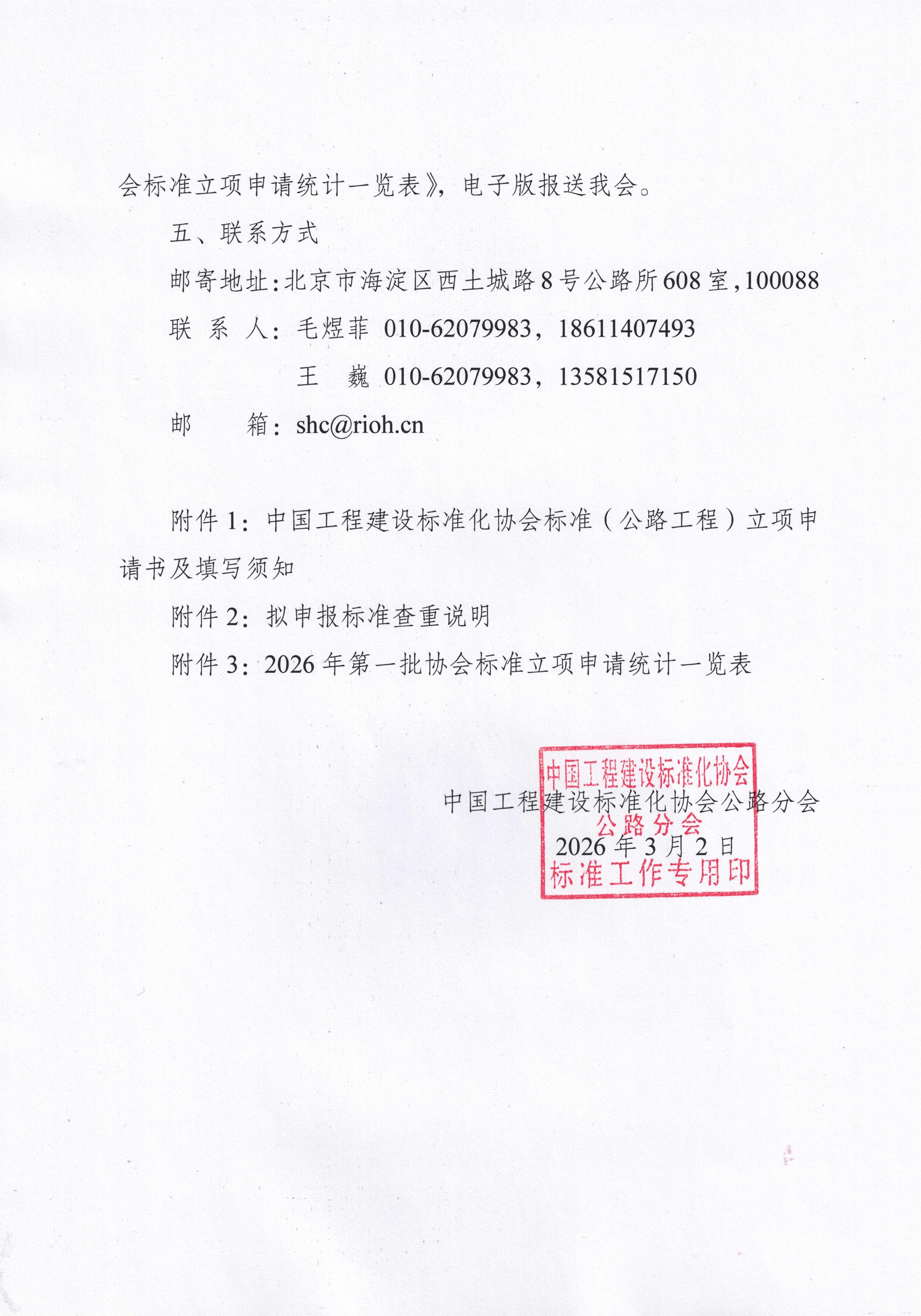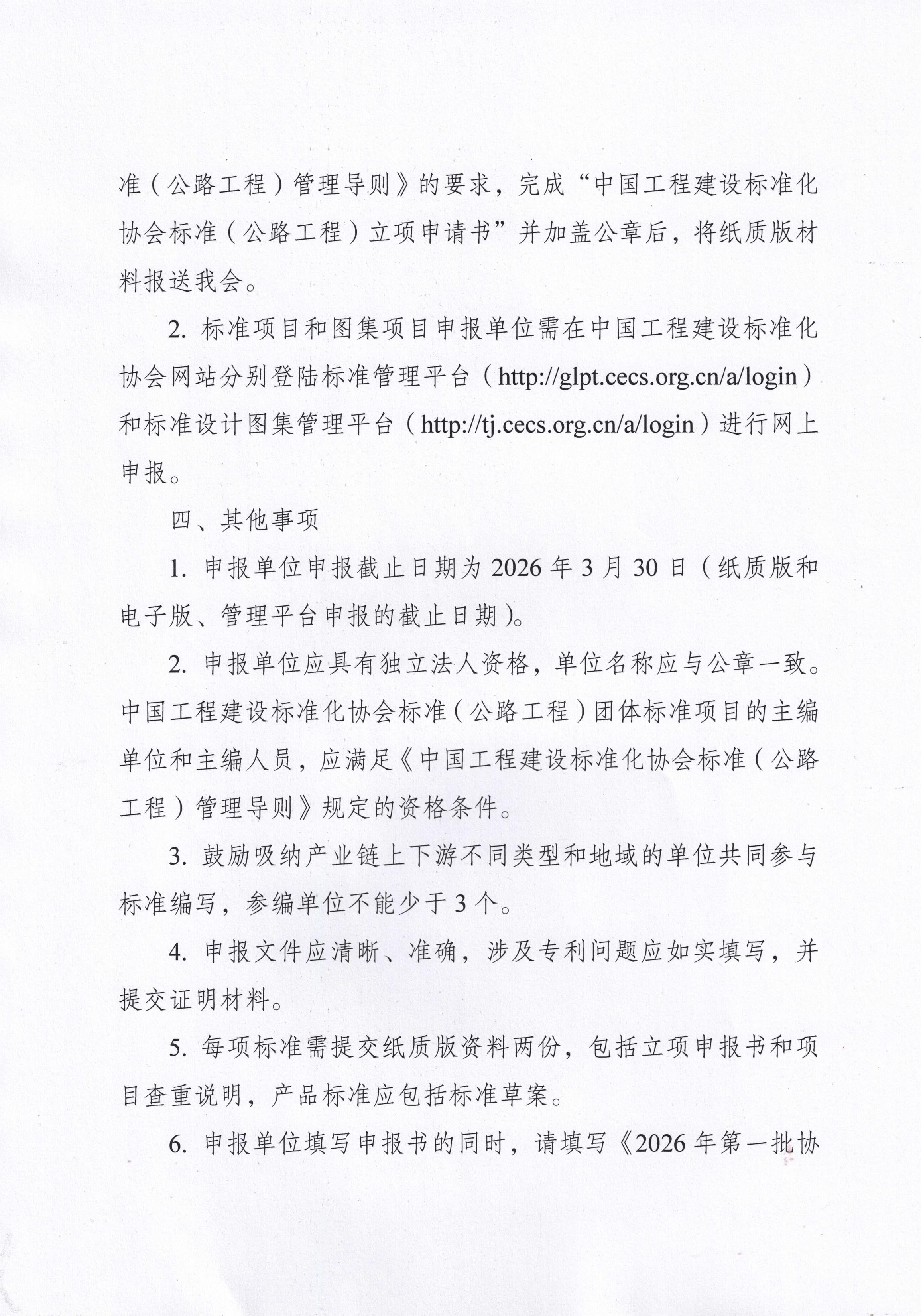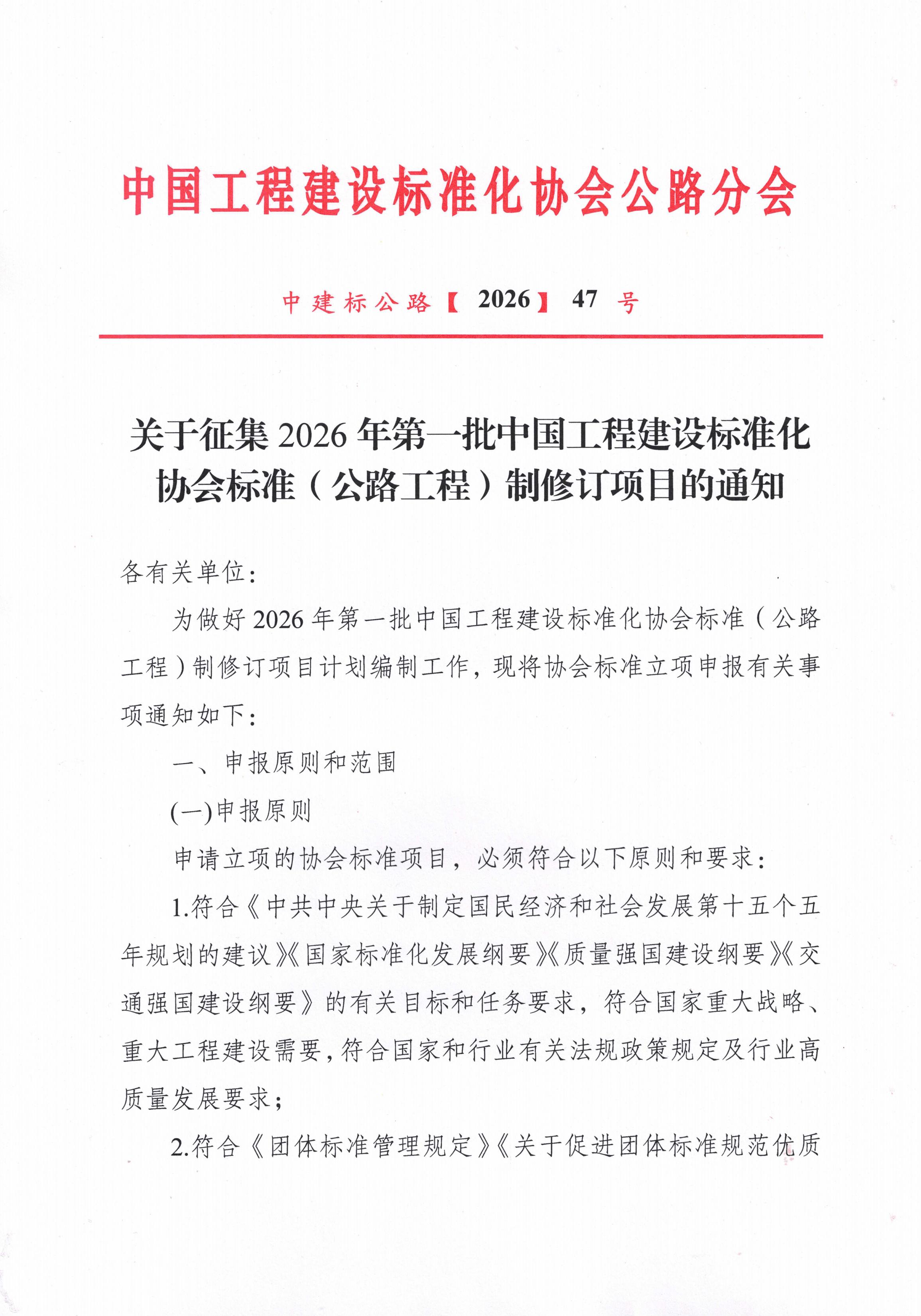 关于征集2026年第一批中国工程建设标准化协会标准(公路工程)立项申请书的通知
