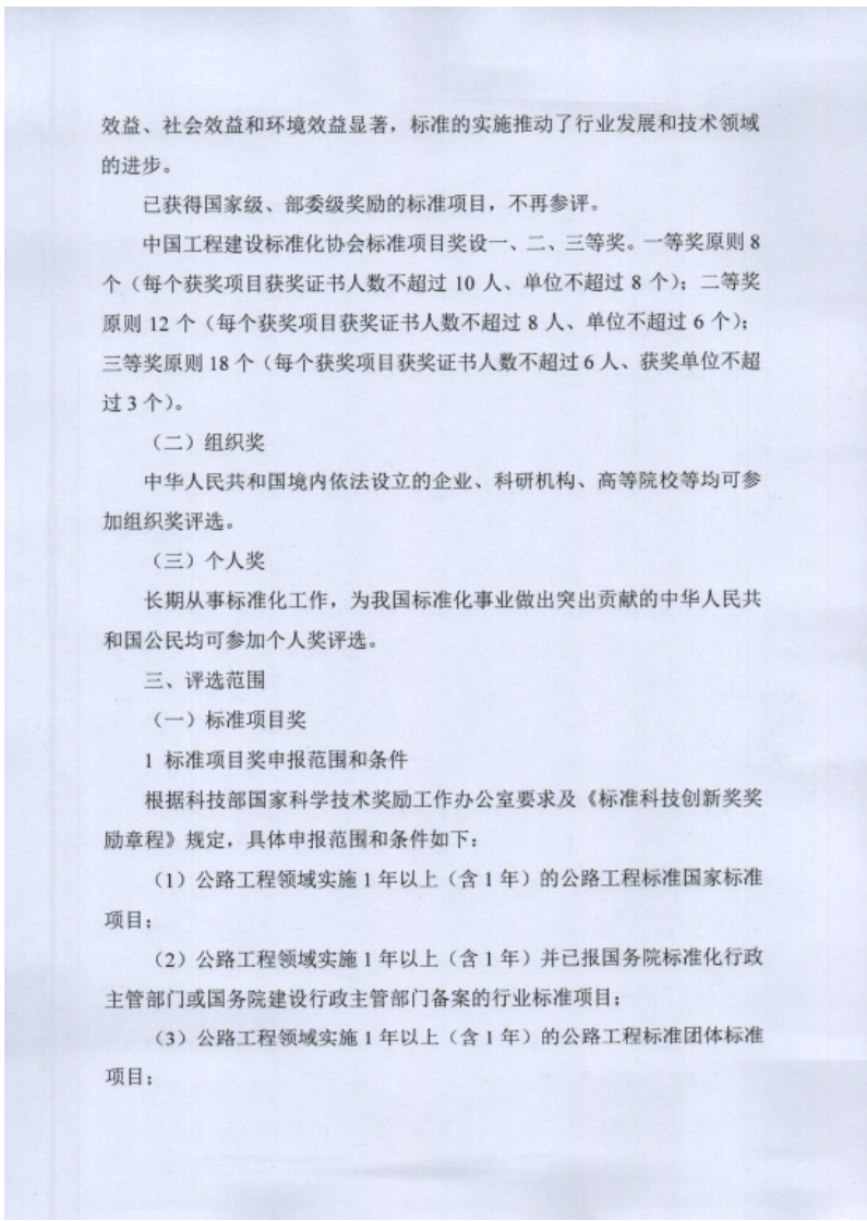 关于组织开展2021年度公路工程领域标准科技创新奖申报工作的通知