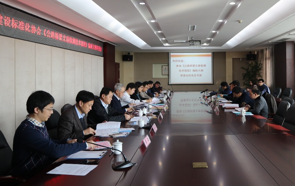 2016年12月2日,中国工程建设标准化协会公路分会(以下简称“公路分会”)在合肥组织召开了中国工程建设标准化协会标准《公路桥梁支座检测技术规程》(以下简称《规程》)编制大纲审查会。会议由公路分会刘怡林副秘书长主持,标准主审交通运输部公路科学研究院桥梁中心赵尚传主任等来自公路、铁路工程管理、高校、科研、质监、施工等单位的16名专家和代表出席了会议,《规程》的主编及参编单位参加了会议。