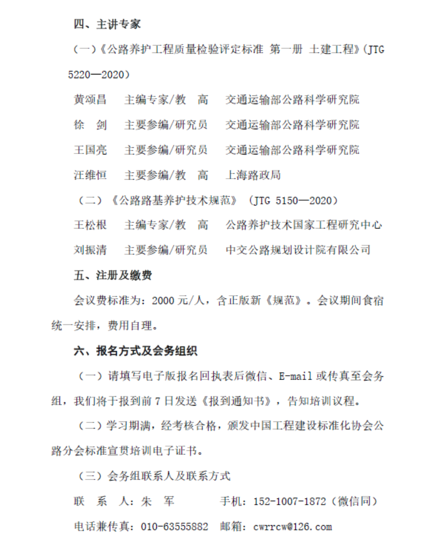 关于举办“《公路养护工程质量检验评定标准 第一册 土建工程》 (JTG 5220—2020)、《公路路基养护技术规范》 (JTG 5150— 2020)宣贯暨公路路基路面桥梁养护技术交流大会”的通知