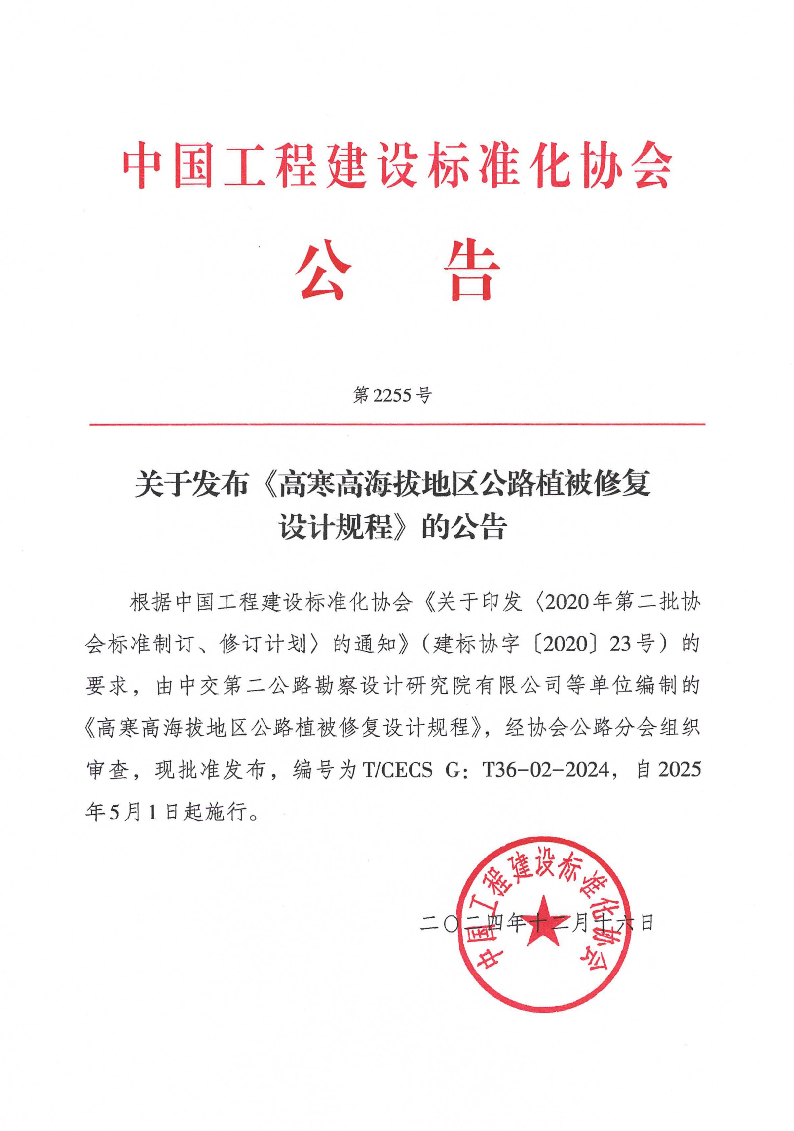 关于发布《高寒高海拔地区公路植被修复设计规程》的公告